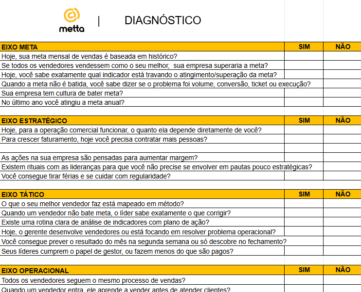 Essa sessão estratégica é baseada na metodologia desenvolvida pela Metta, consultoria liderada por Tiago Alves, especialista em performance comercial.