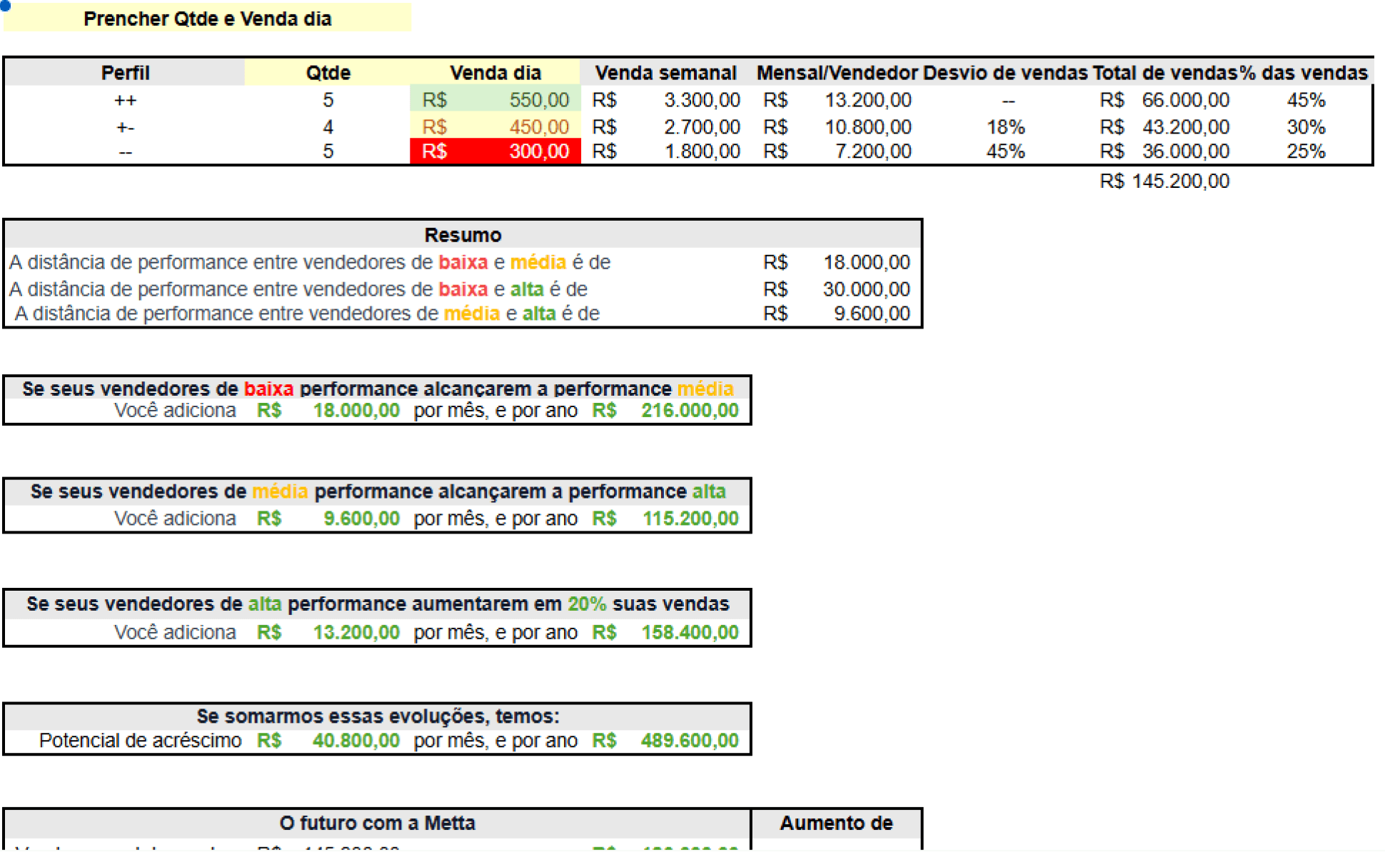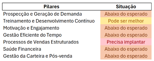 É uma análise técnica feita por especialistas em performance comercial.